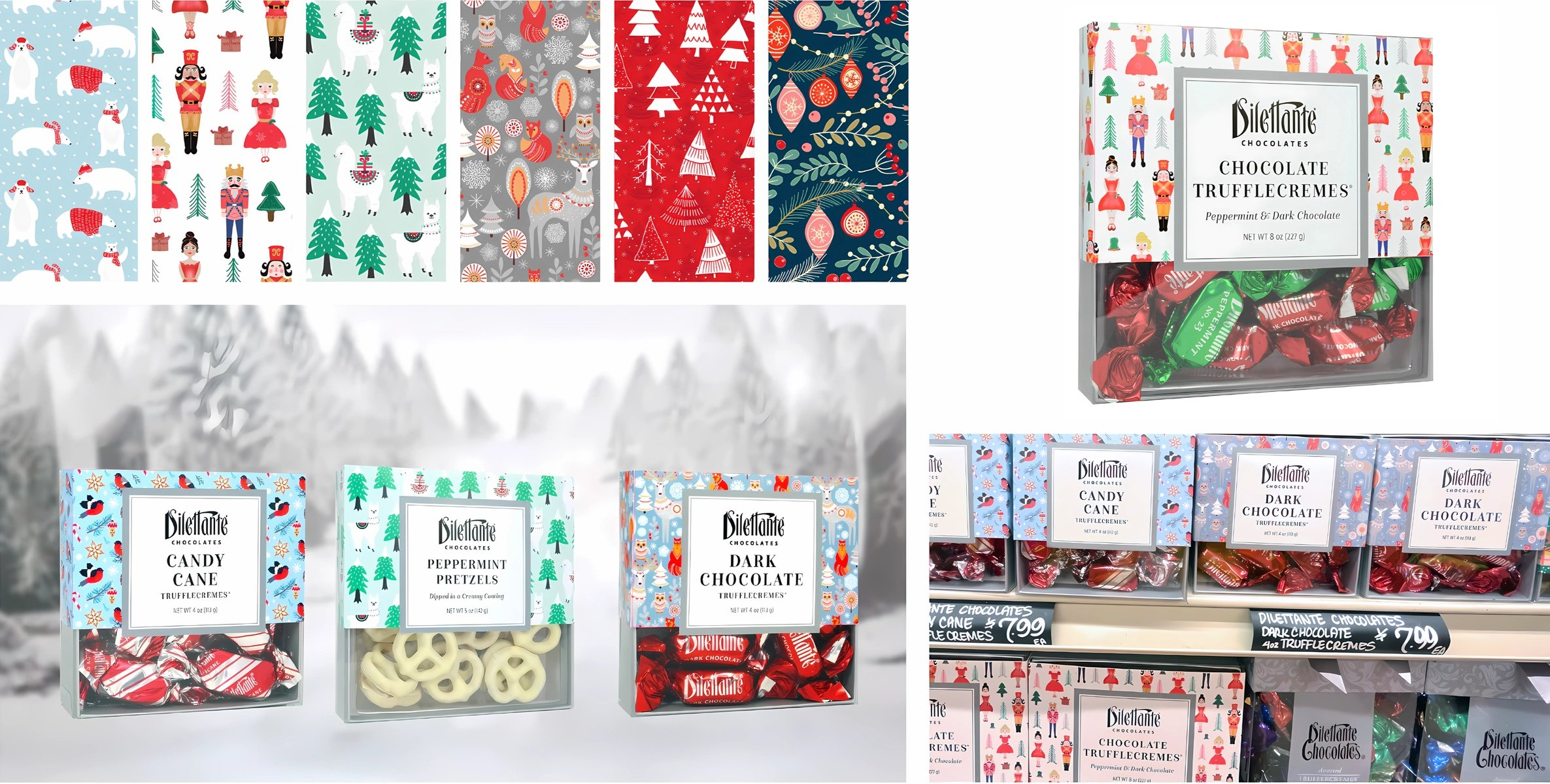 Credits: Gourmet Teas watercolor illustrations @Karen Kurycki, Whole Leaf Organics tea field illustration @Maija Fiebig, Wellness Teas photo-illustrations @Joe Heiner, Dilettante chocolate photography @Sean Misa